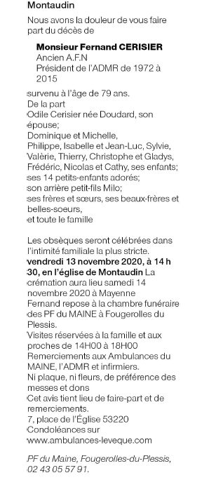 Né à Montaudin (53220, France) le samedi 12 avril 1941
