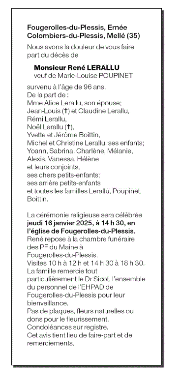 Annonce nécrologique de Monsieur René LERALLU