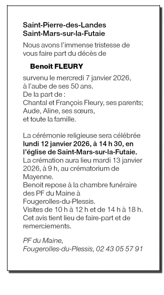 Annonce nécrologique de Monsieur Benoit FLEURY