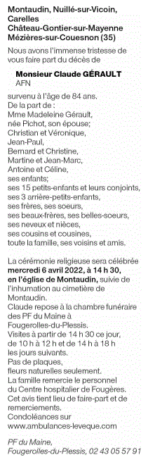 Annonce nécrologique de Monsieur Claude GÉRAULT